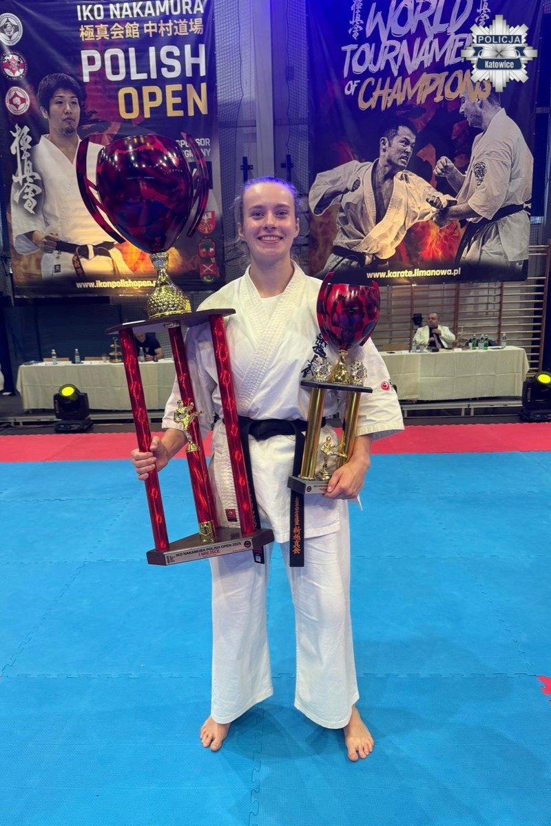Katowicka policjantka post. Katarzyna Jaśkowska posiada czarny pas II dan i jest zawodniczką rywalizującą na najwyższym poziomie. Rok 2025 był dla niej wyjątkowo intensywny i obfitował w znaczące sukcesy sportowe. W maju zdobyła srebrny medal Mistrzostw Świata IFK w Lipsku, w czerwcu sięgnęła po tytuł Mistrzyni Polskiej Federacji Karate Shinkyokushin, we wrześniu wywalczyła brązowy medal Mistrzostw Europy Karate Shinkyokushin na Węgrzech, a w październiku zwyciężyła w Otwartym Pucharze Polski Karate Kyokushin w Limanowej.