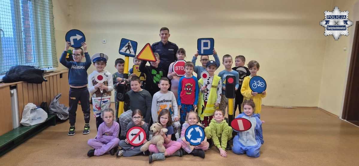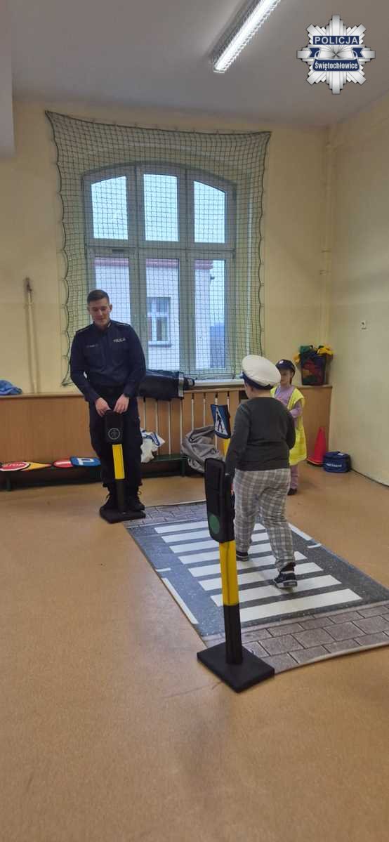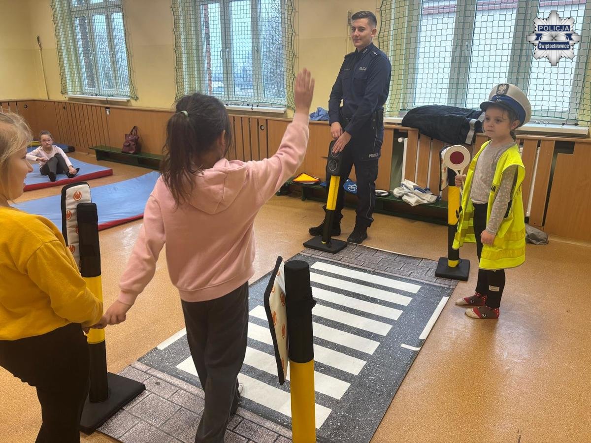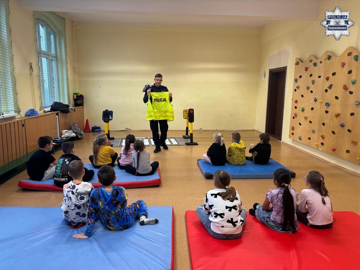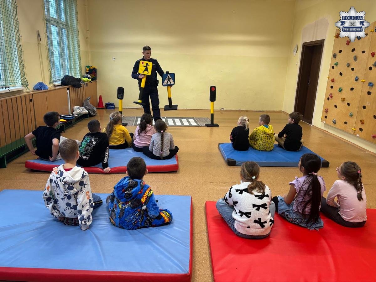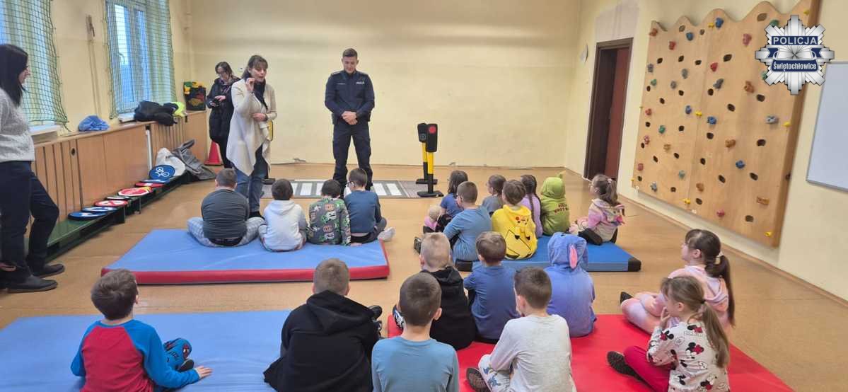 Świętochłowiccy policjanci odwiedzili uczniów Szkoły Podstawowej nr 17. Tematem spotkania było bezpieczeństwo w ruchu drogowym. Uczniowie w formie zabawy uczyli się podstawowych zasad poruszania się po drodze.