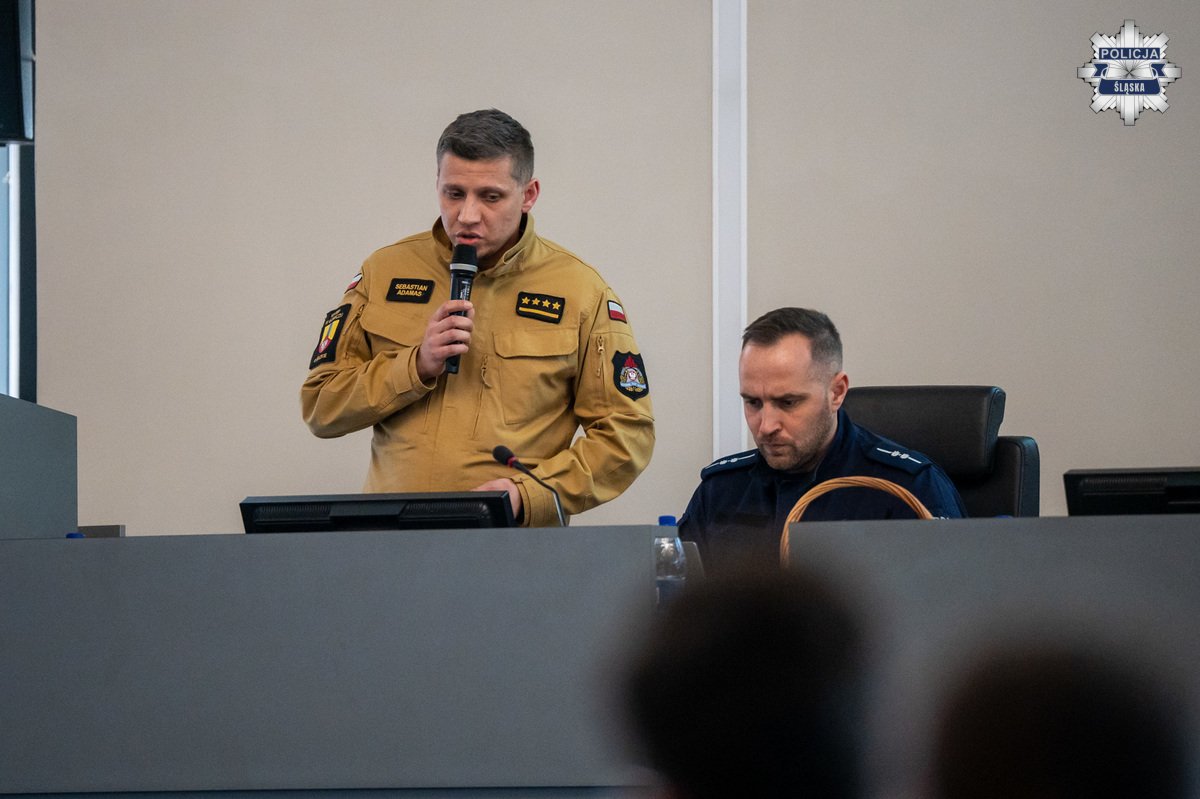 Kwestie związane z detekcją materiałów niebezpiecznych oraz rozpoznawaniem zagrożeń przedstawili mł. bry. Artur Wydra i kpt. Kamil Biały z Centralnej Szkoły Państwowej Straży Pożarnej w Częstochowie.