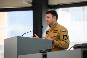 W końcowej części seminarium kpt. dr inż. Krzysztof Jankowski, kpt. Marcin Konieczny, kpr. dr hab. Lechosław Jocz oraz szer. Bartosz Łysakowski z 15 Lubuskiej Brygady Obrony Terytorialnej oraz Inspektoratu Wojsk Lądowych omówili przeciwdziałanie zagrożeniom chemicznym w warunkach skażenia środowiska oraz funkcjonowanie mobilnych grup szybkiego rozpoznania zagrożeń CBRNE w strukturach Sił Zbrojnych Rzeczypospolitej Polskiej.