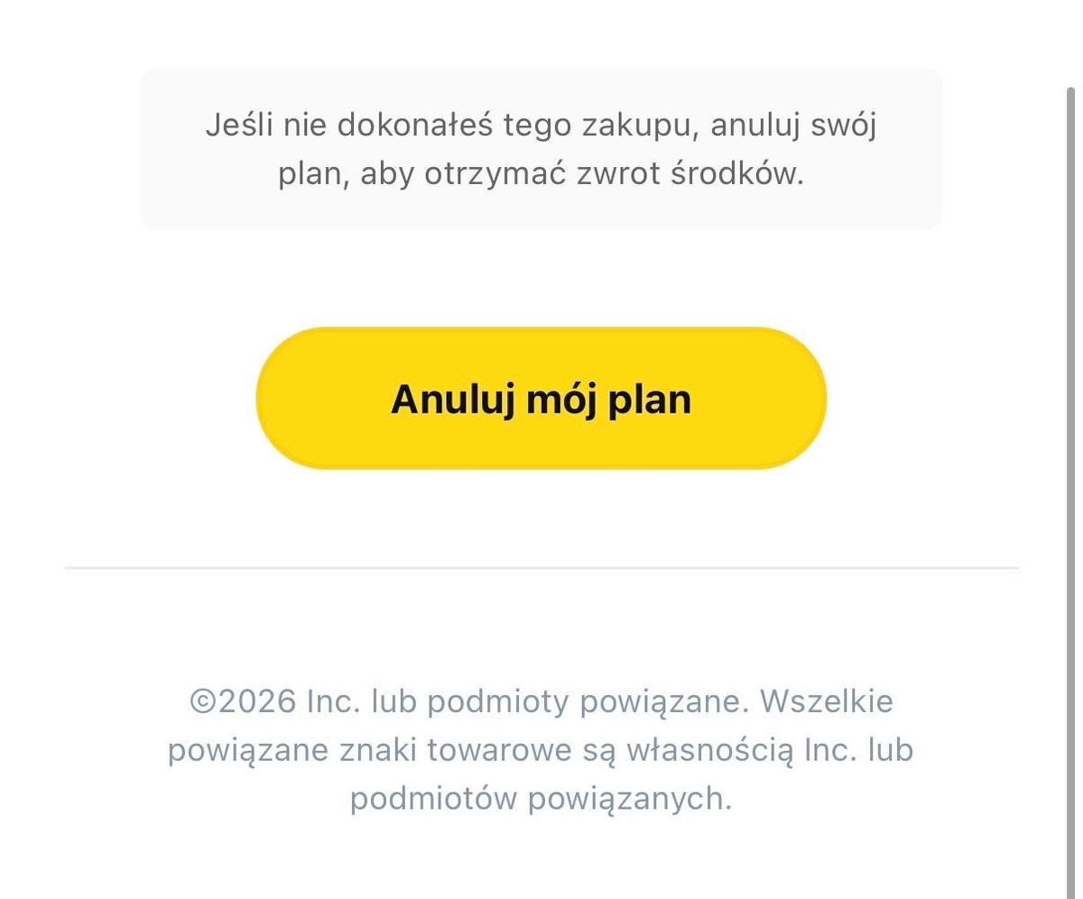 - w przypadku problemów z płatnością, użytkownik jest informowany bezpośrednio po zalogowaniu się na oficjalnej stronie lub w aplikacji.