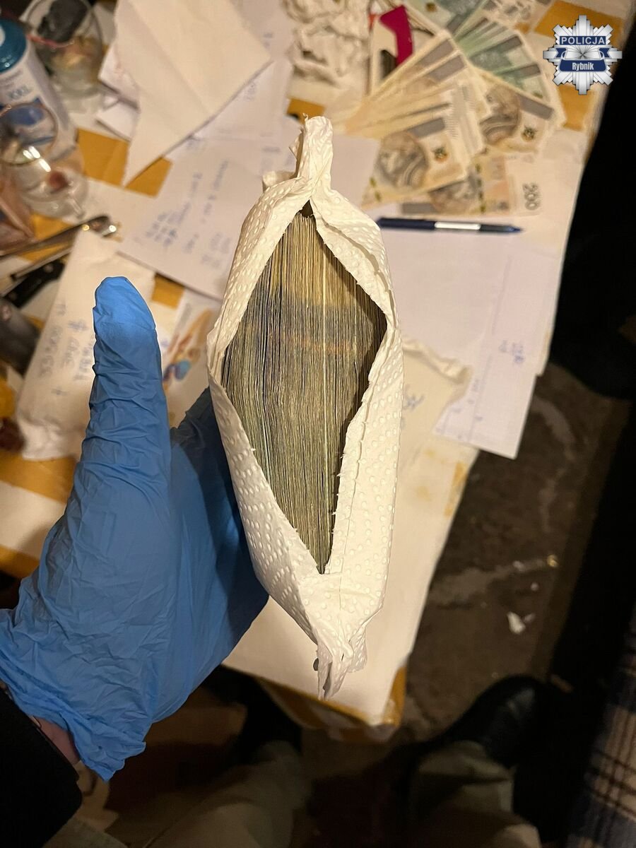 Podczas przeszukań policjanci zabezpieczyli dowody przestępczej działalności - w tym wyłudzoną gotówkę, również w obcych walutach, w łącznej wysokości około 250 tysięcy złotych.