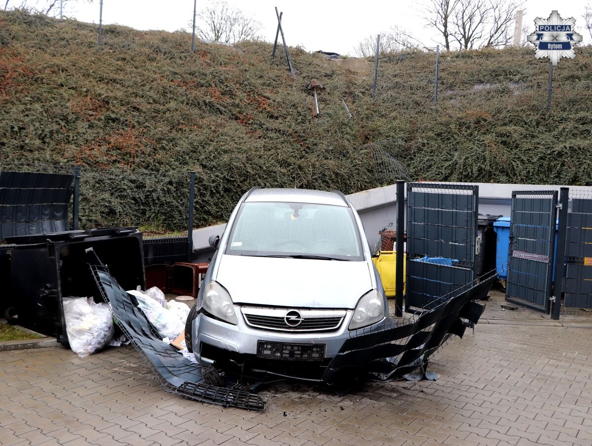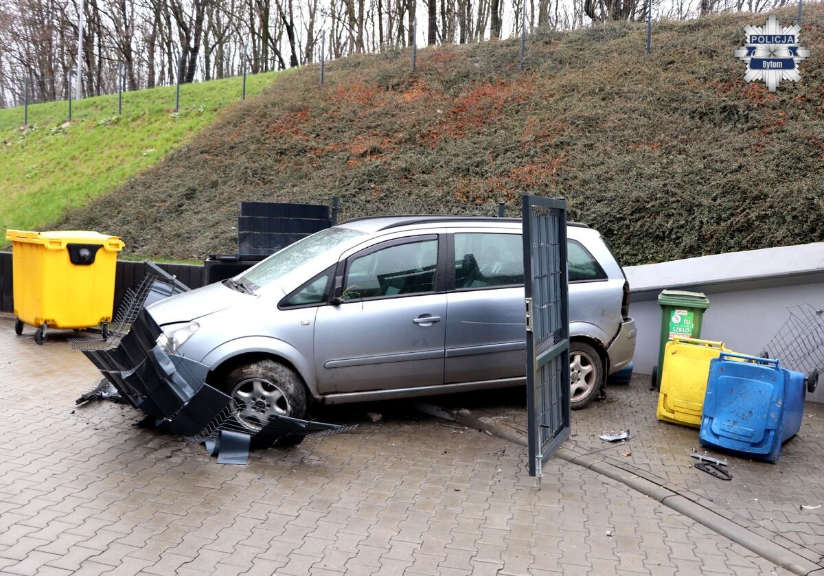 Samochód uderzył w znajdujące się tam kontenery na odpady i zatrzymał się na ogrodzeniu, uszkadzając jego przęsła. Przeprowadzone przez policjantów badanie trzeźwości wykazało, że kierujący poruszał się na „podwójnym gazie”, mając w organizmie ponad 3 promile alkoholu.