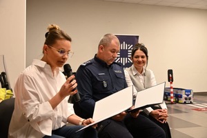 Przez cały czas nad bezpieczeństwem uczestników czuwali policjanci, a najmłodszym towarzyszyły policyjne maskotki – Sznupek oraz Smoczyca Klara, które dodawały wydarzeniu radosnej atmosfery.
