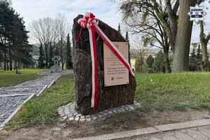 Następnie uczestnicy udali się do Miejsca Pamięci przy ulicy Wyzwolenia 134, gdzie odbyło się uroczyste odsłonięcie tablicy oraz złożenie kwiatów przez delegacje.