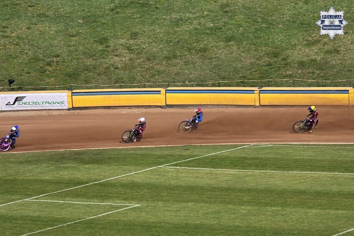 Świętochłowiccy policjanci zabezpieczali mecz żużlowy pomiędzy Skałką Świętochłowice a Lokomotivem Daugavpils. Dzięki odpowiedniemu przygotowaniu służb oraz właściwej postawie kibiców wydarzenie przebiegło spokojnie i bez incydentów. Mundurowi czuwali nad bezpieczeństwem uczestników zarówno na terenie stadionu, jak i w jego okolicy.