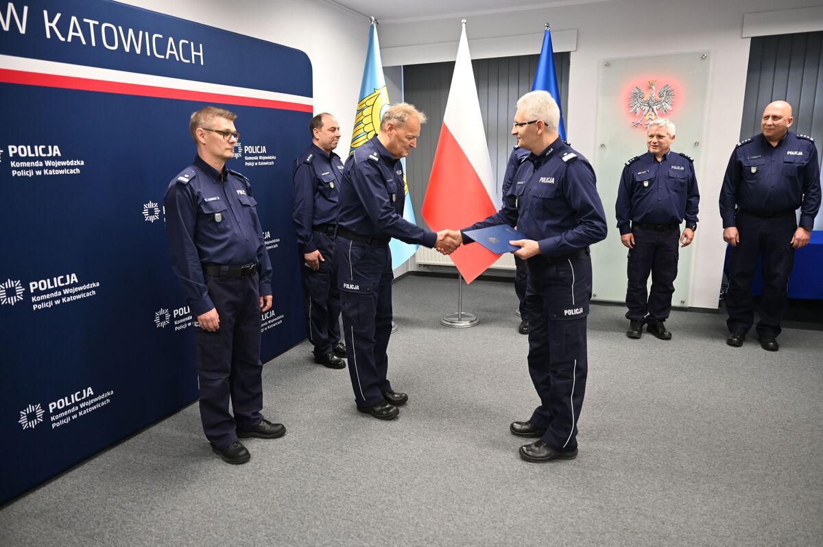 Oficerowi, za dotychczasową służbę oraz wkład w rozwój i działalność śląskiej Policji, podziękował nadinsp. Mariusz Krzystyniak - Komendant Wojewódzki Policji w Katowicach wraz ze swoimi zastępcami - insp. Radosławem Kacprzakiem, insp. Jackiem Stelmachem oraz mł. insp. Markiem Gadzińskim. Komendanci pogratulowali naczelnikowi awansu i życzyli dalszych sukcesów.