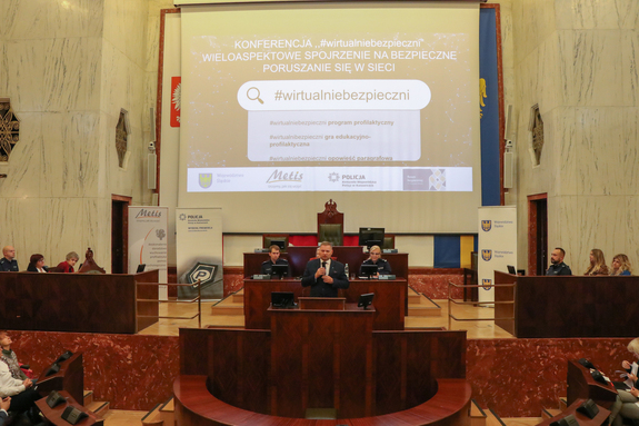 Policjanci z Wydziału Prewencji Komendy Wojewódzkiej Policji w Katowicach wspólnie z przedstawicielami Regionalnego Ośrodka Metodyczno - Edukacyjnego „Metis” w Katowicach zorganizowali konferencję dotyczącą wdrożenia nowego programu profilaktycznego pn. #wirtualniebezpieczni. Wydarzenie z udziałem zaproszonych gości, dyrektorów szkół oraz policyjnych profilaktyków miało miejsce w Sali Sejmu Śląskiego w Urzędzie Wojewódzkim w Katowicach.