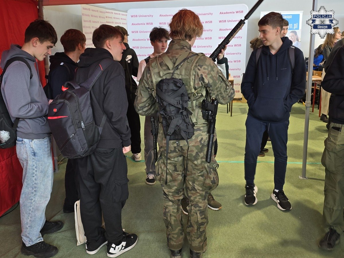 Podczas Targów Przedsiębiorczości, Edukacji i Pracy w Cieszynie policjanci przedstawili ofertę służby, rozmawiali z młodzieżą o wyborach zawodowych i zachęcali do wstąpienia w szeregi Policji. Wydarzenie odbyło się pod hasłem „Rozwój i przyszłość regionu zależy od nas”.
