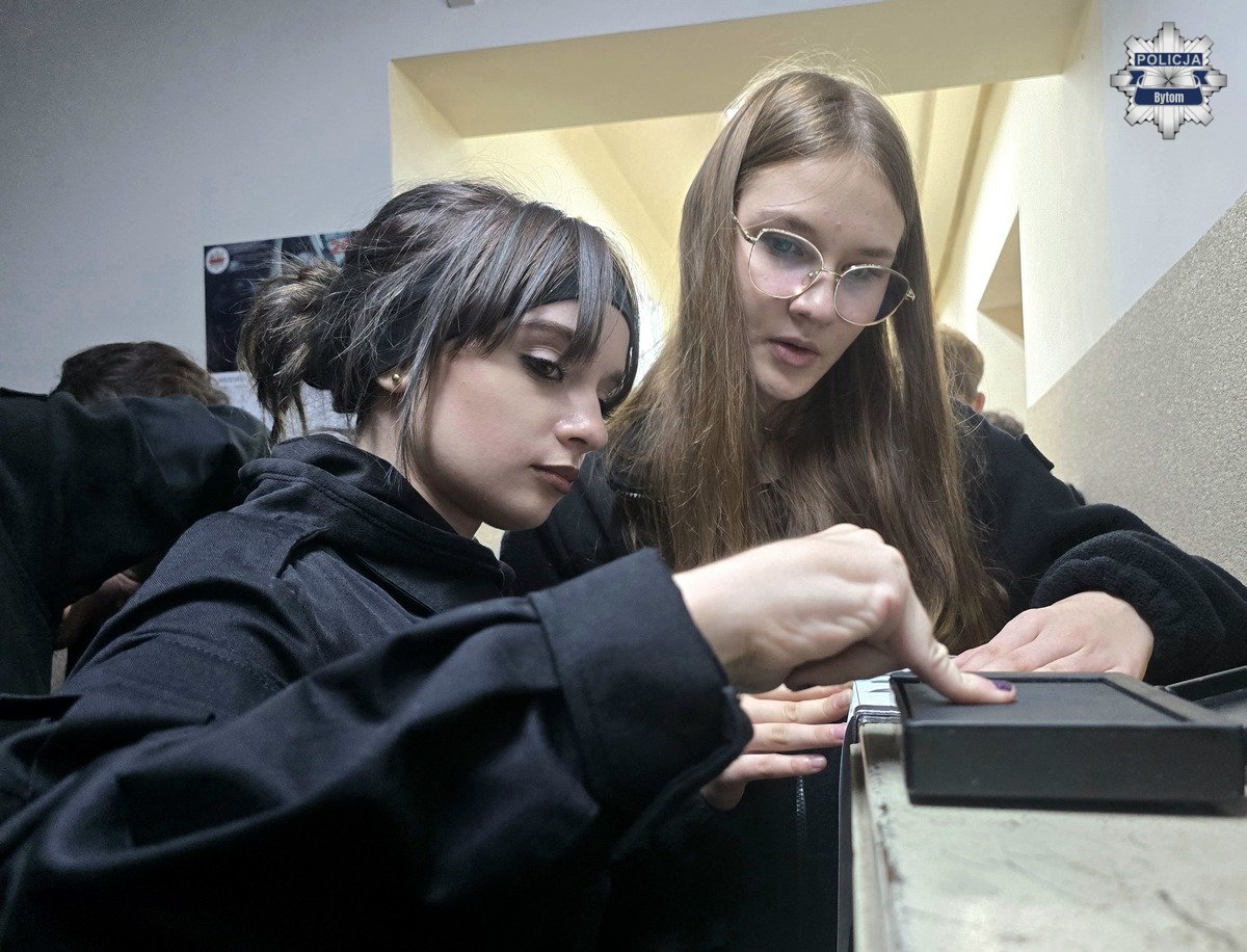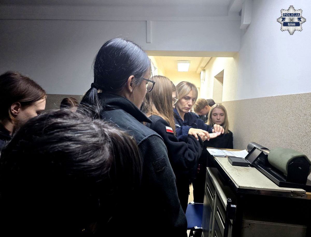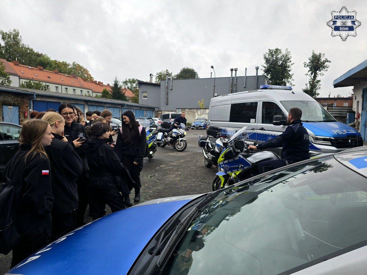 Bytomscy stróże prawa oprowadzili młodzież po najważniejszych miejscach w jednostce, a także zaprezentowali wykorzystywany w codziennej służbie sprzęt. Uczniowie mieli również okazję dowiedzieć się, jakie umiejętności są potrzebne do pracy w danym wydziale. Instruktor strzelań policyjnych omówił i zademonstrował gościom broń palną, będącą na wyposażeniu policjantów.