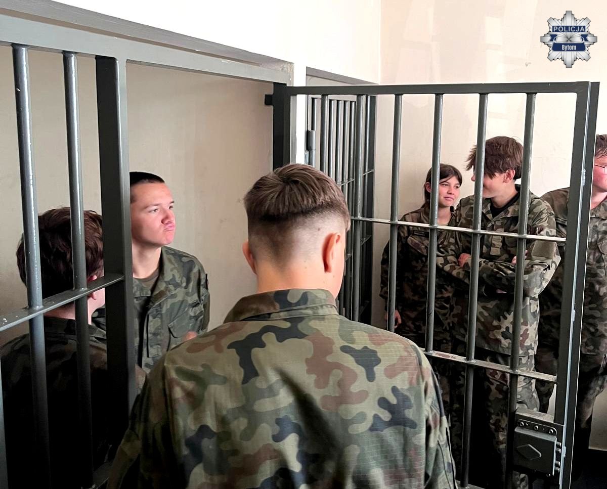 Uczniowie klas mundurowych w bytomskiej komendzie