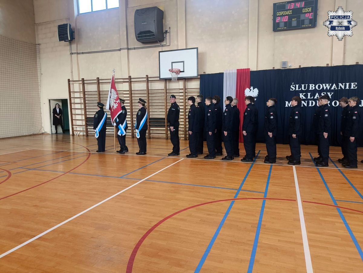 W obecności władz miasta i pocztów sztandarowych 22 uczniów klasy mundurowej złożyło uroczyste ślubowanie. Prezydent Rybnika Piotr Kuczera zwrócił uwagę na symboliczny wymiar wydarzenia. Po raz pierwszy w historii miasta zdarzyło się, że uczniowie, kadeci, ślubowali na sztandar miasta. To ważny symbol tego, kim w przyszłości macie zostać. Ślubowaliście i mówiliście o odpowiedzialności. Wchodzicie do służby — a to słowo zawsze mówi o poświęceniu — przekazał młodzieży włodarz Rybnika.