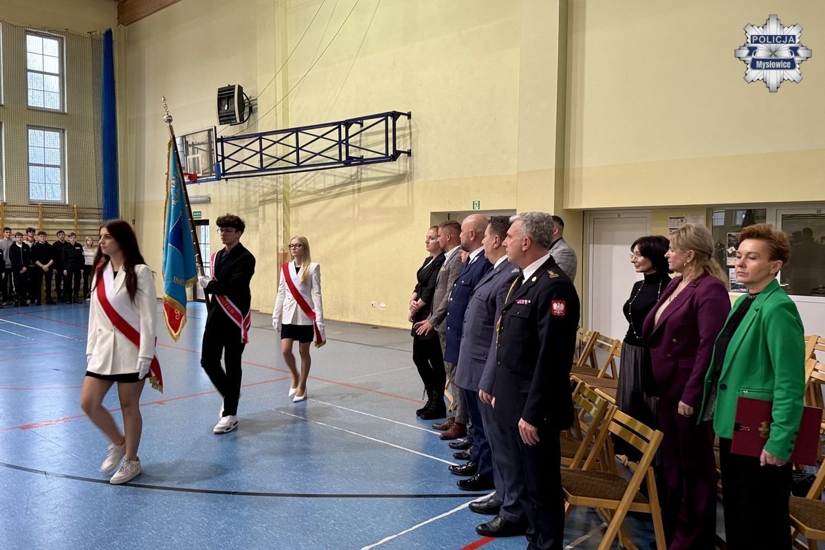 Dbanie o dobre imię szkoły i sumienne wypełnianie obowiązków ucznia - to w obecności rodziców, nauczycieli, starszych kolegów i zaproszonych gości ślubowali licealiści klas mundurowych. Wśród uczestniczących w uroczystości osób, nie zabrakło także przedstawicieli służb mundurowych. KMP w Mysłowicach reprezentował I Zastępca Komendanta Miejskiego Policji w Mysłowicach mł. insp. Piotr Migacz.