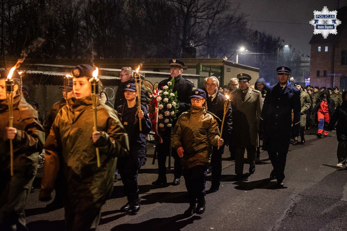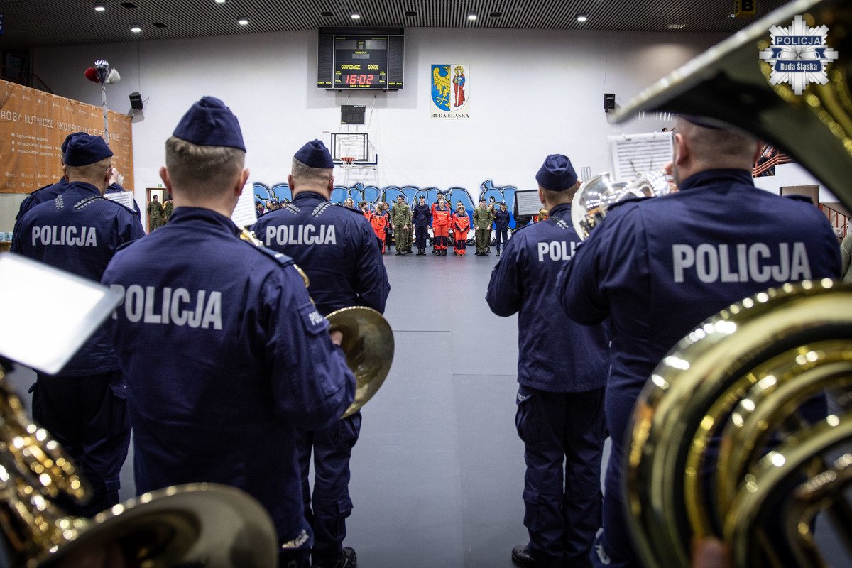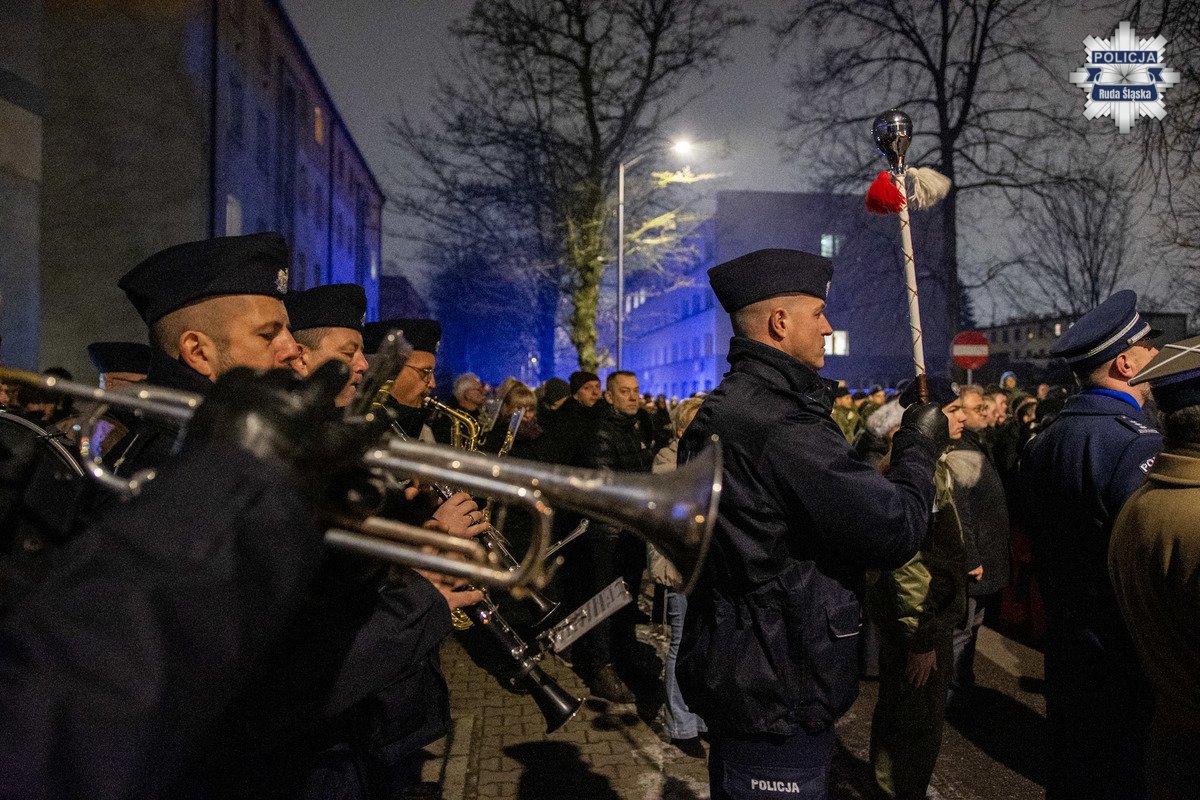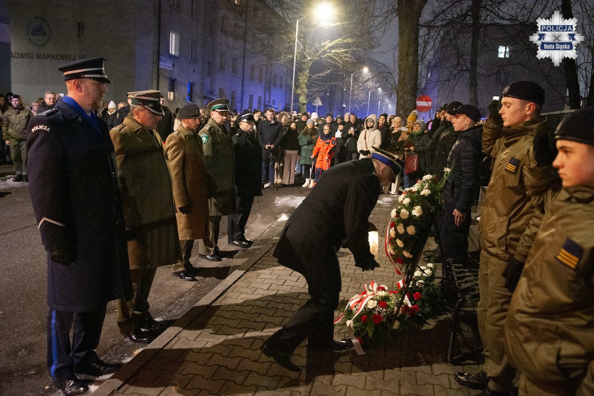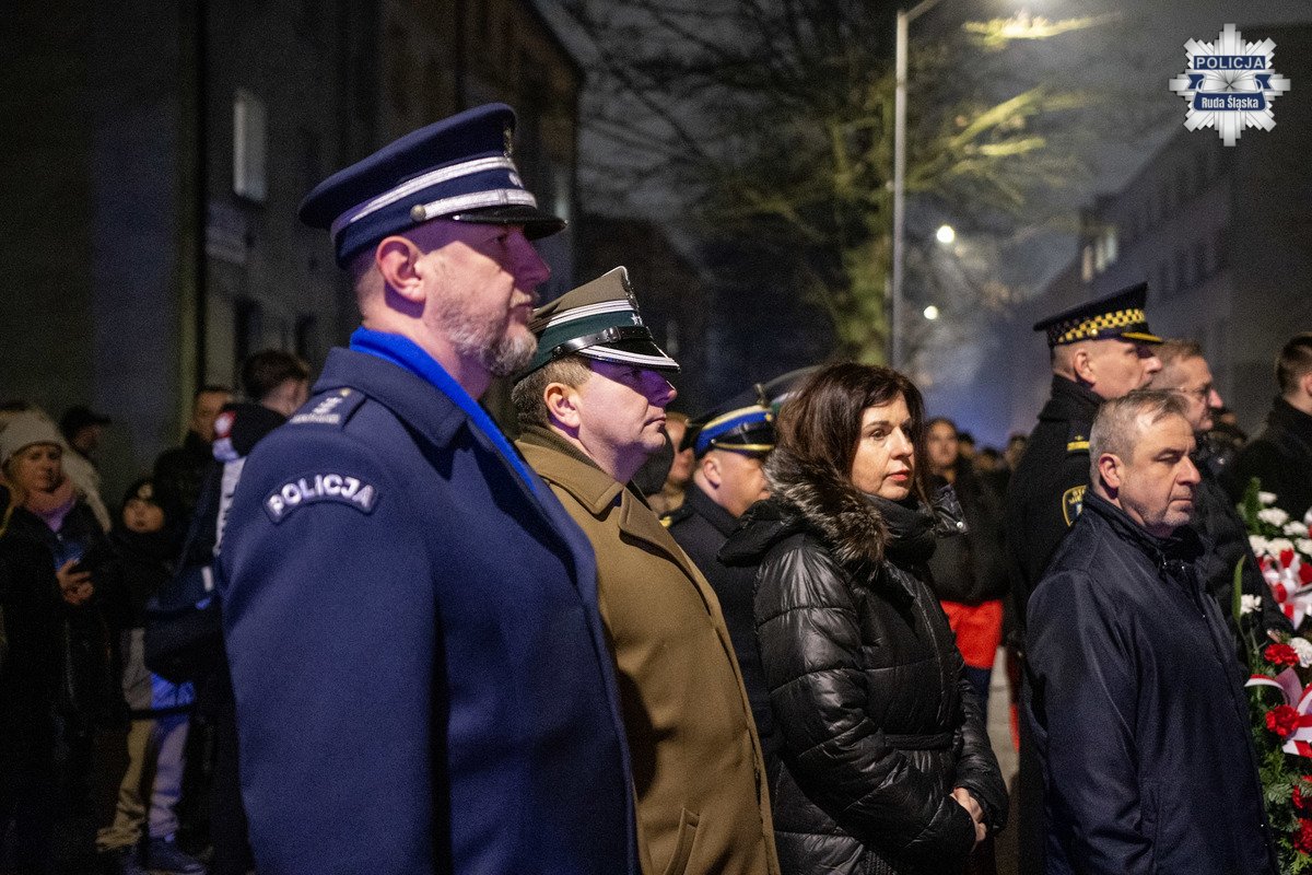 Komendant Miejski Policji w Rudzie Śląskiej insp. dr Piotr Uwijała, gościł w piątek na uroczystości ślubowania klas pierwszych szkoły mundurowej. Młodzież zgromadziła się na hali rudzkiego MOSIR-u, gdzie odbył się uroczysty apel z udziałem ich rodzin oraz zaproszonych gości. Wydarzenie to uświetnili policjanci z Orkiestry Komendy Wojewódzkiej Policji w Katowicach, którzy zapewnili oprawę muzyczną. Po ślubowaniu, awansach i przemówieniach, wszyscy uczestnicy przeszli pod pomnik z tablicą upamiętniającą Jadwigę Markową, gdzie odczytano Apel Poległych oraz zapalono znicze i złożono wiązanki kwiatów.