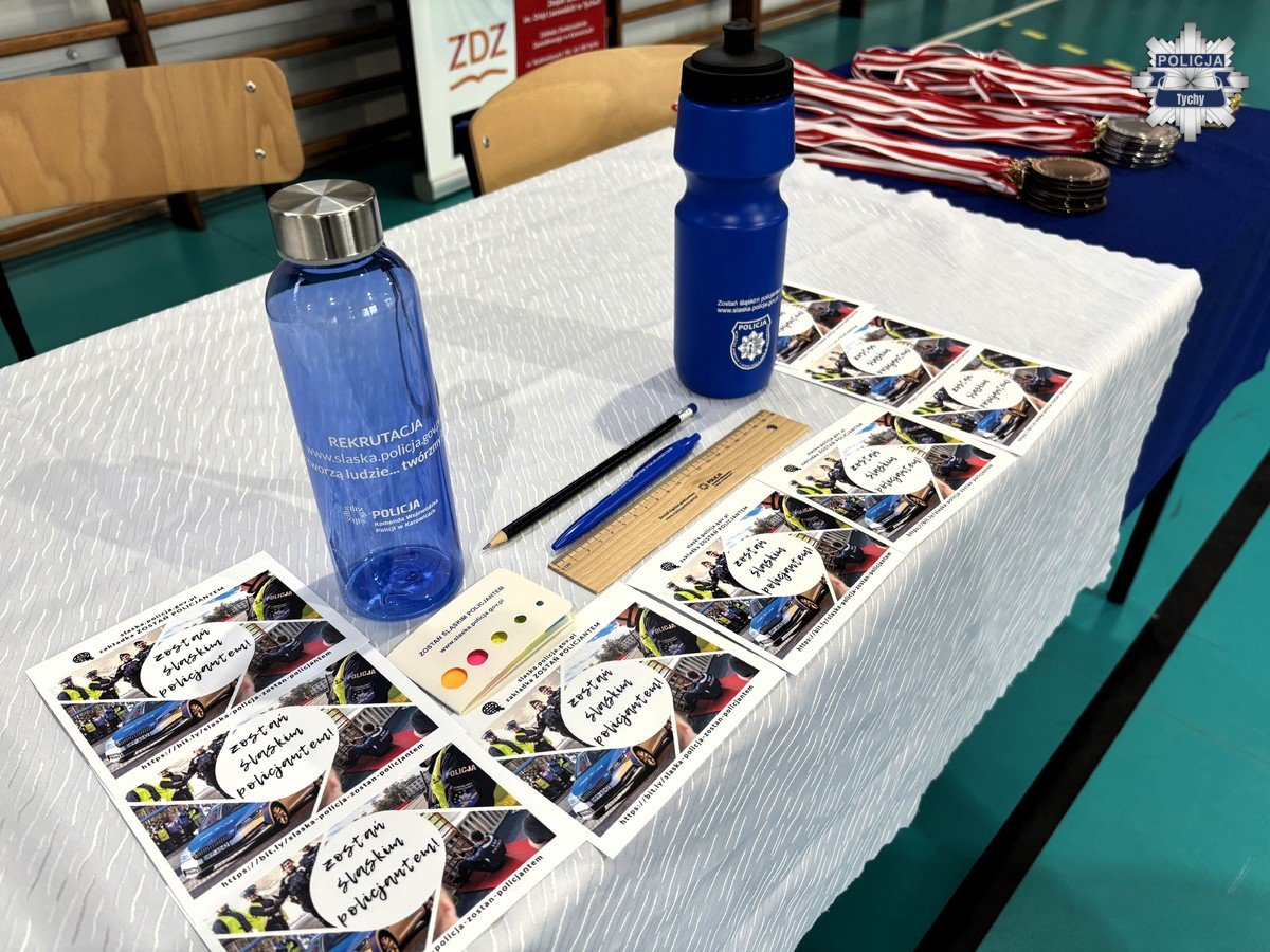 Podczas wydarzenia obecni byli również policjanci z Zespołu ds. Profilaktyki Społecznej, Nieletnich i Patologii Wydziału Prewencji Komendy Miejskiej Policji w Tychach. Funkcjonariusze przygotowali dla uczestników konkursu oraz uczniów szkoły gadżety promocyjne z logo Policji, które cieszyły się dużym zainteresowaniem wśród młodzieży.