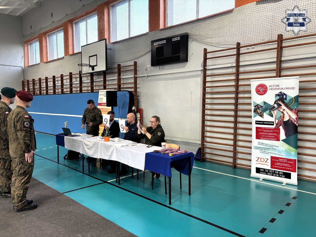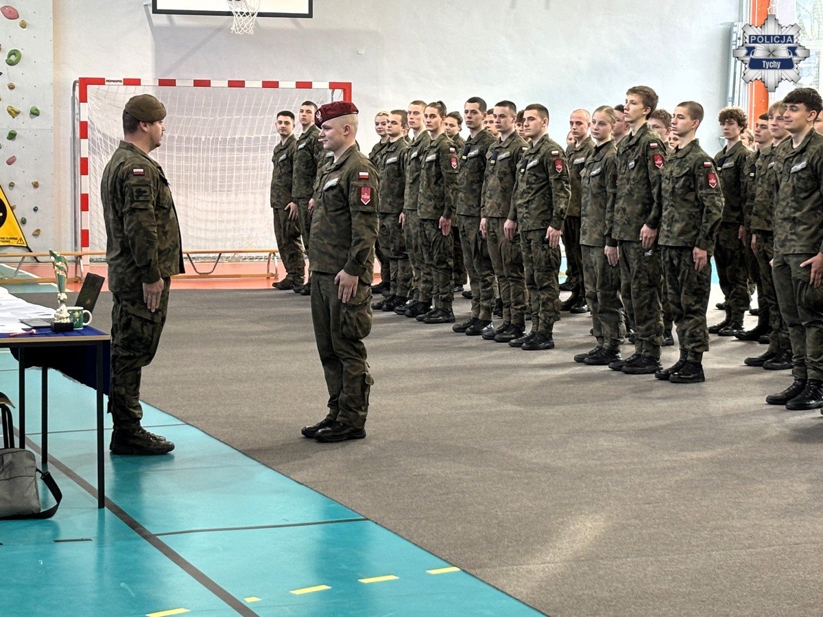 W środę w Zespole Szkół im. Orląt Lwowskich w Tychach odbył się konkurs pokazów musztry, który zgromadził uczniów klas mundurowych oraz przedstawicieli służb mundurowych. Wydarzenie było okazją do zaprezentowania wysokiego poziomu wyszkolenia młodzieży kształcącej się w profilach policyjnym, Straży Granicznej oraz wojskowym, a także do integracji środowiska szkolnego z funkcjonariuszami Policji.