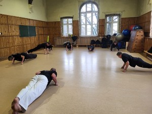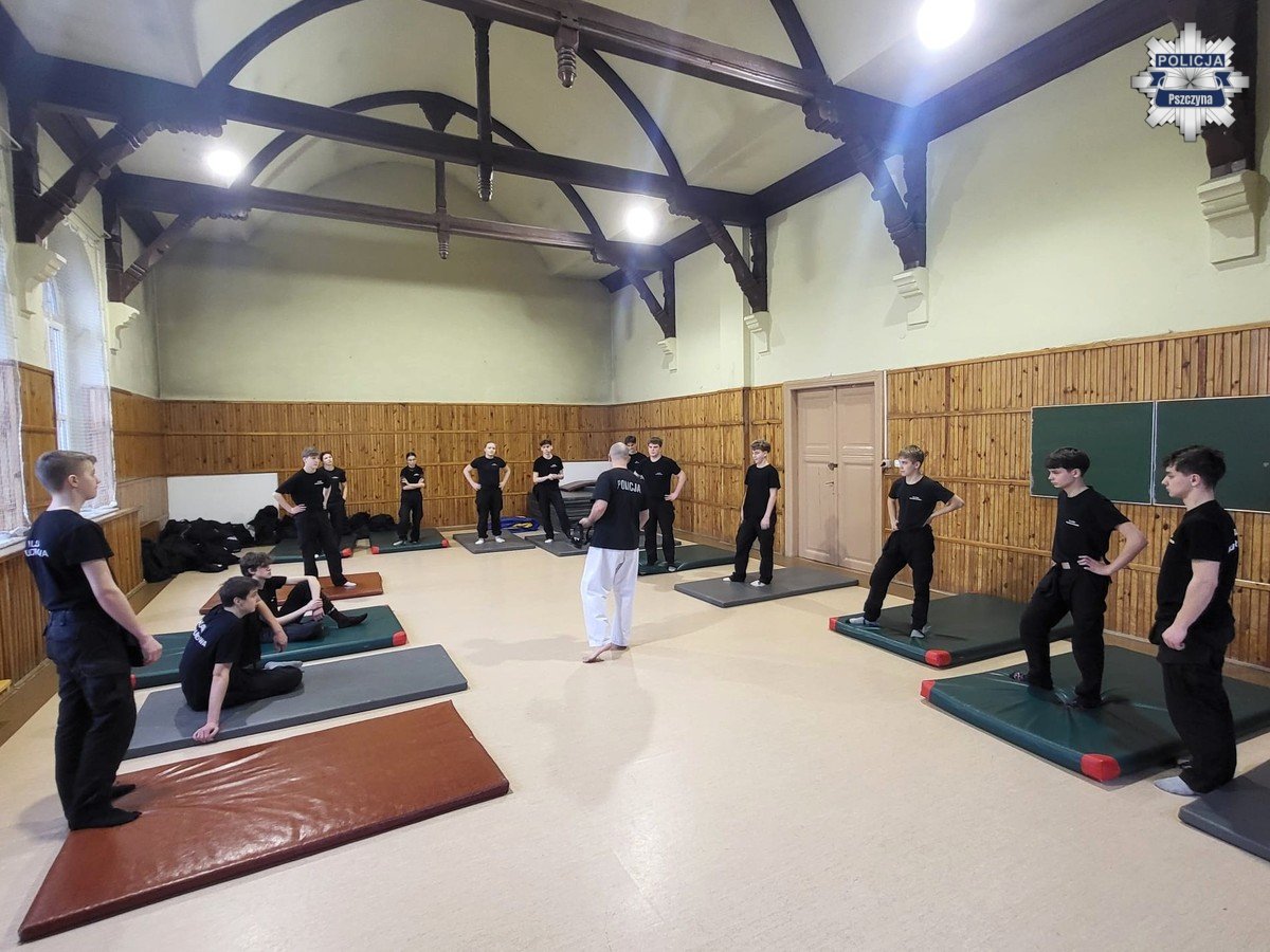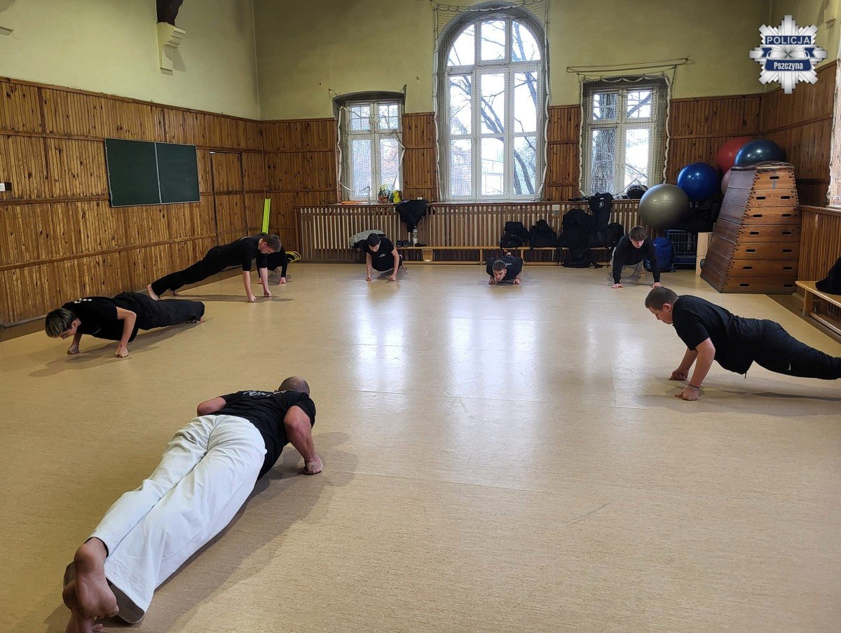 Zajęcia z kształtowania sprawności fizycznej częściowo prowadzi Zastępca Naczelnika, asp. szt. Sebastian Piątyszek. Zajęcia objęły elementy treningu wytrzymałościowego, siłowego i koordynacyjnego, a także praktyczne wskazówki dotyczące przygotowania do testów sprawnościowych wymaganych w procesie rekrutacji do służby w Policji.